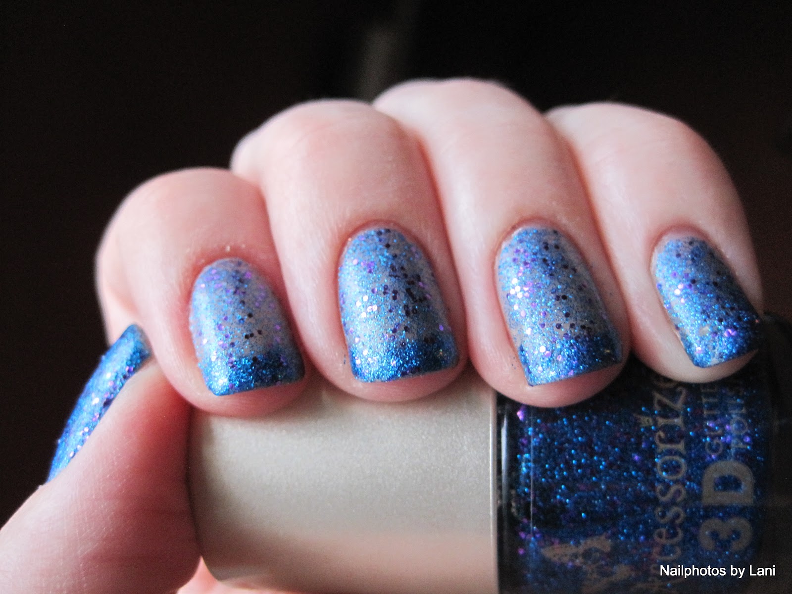 On the two first nailphotos below, you can see what the glitter looks like without top coat: